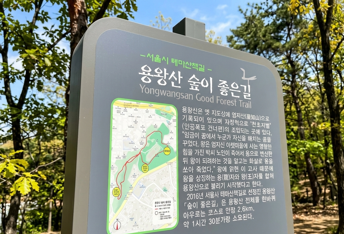 용왕산의 가장 큰 장점은 바로 '접근성'과 '편안함'입니다. 경사가 완만하고 산책로가 잘 정비되어 있어 어린아이부터 어르신까지 남녀노소 누구나 부담 없이 오를 수 있습니다. 울창한 나무들이 만들어주는 천연 지붕 아래를 걷다 보면 서울 한복판이라는 사실을 잠시 잊게 될 정도로 상쾌한 공기를 마실 수 있습니다.